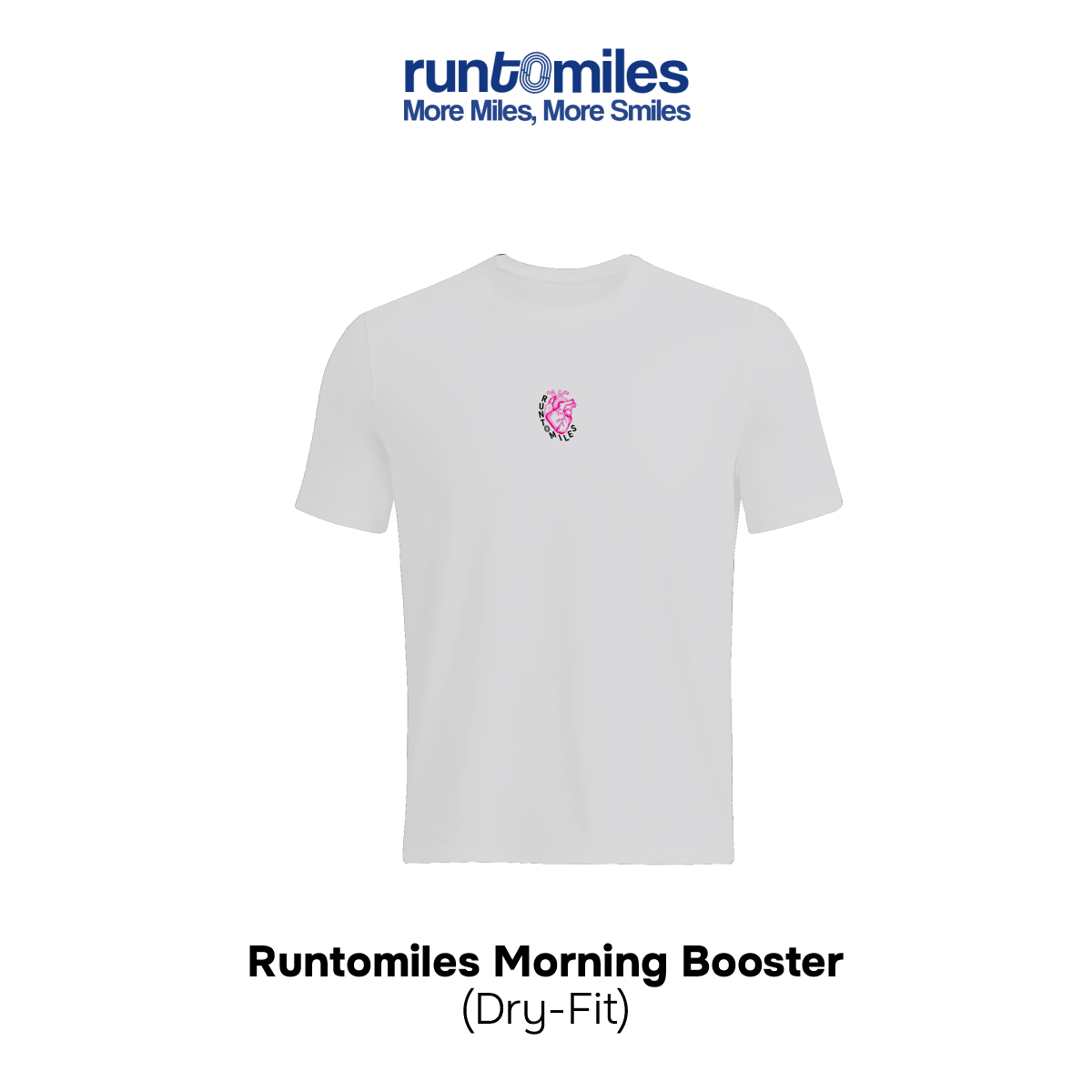 Morning Booster Tee – White (Dry-Fit) memiliki desain sablon depan dan belakang yang menarik, dengan ilustrasi jantung dan tulisan interval run sebagai elemen utama. Desain ini menonjolkan karakter pelari yang konsisten dan berorientasi pada progres. Cutting Unisex Regular Fit memberikan keseimbangan antara kenyamanan dan tampilan rapi, sehingga cocok digunakan untuk olahraga maupun aktivitas santai. Produk ini tersedia eksklusif hanya di toko Runtomiles.